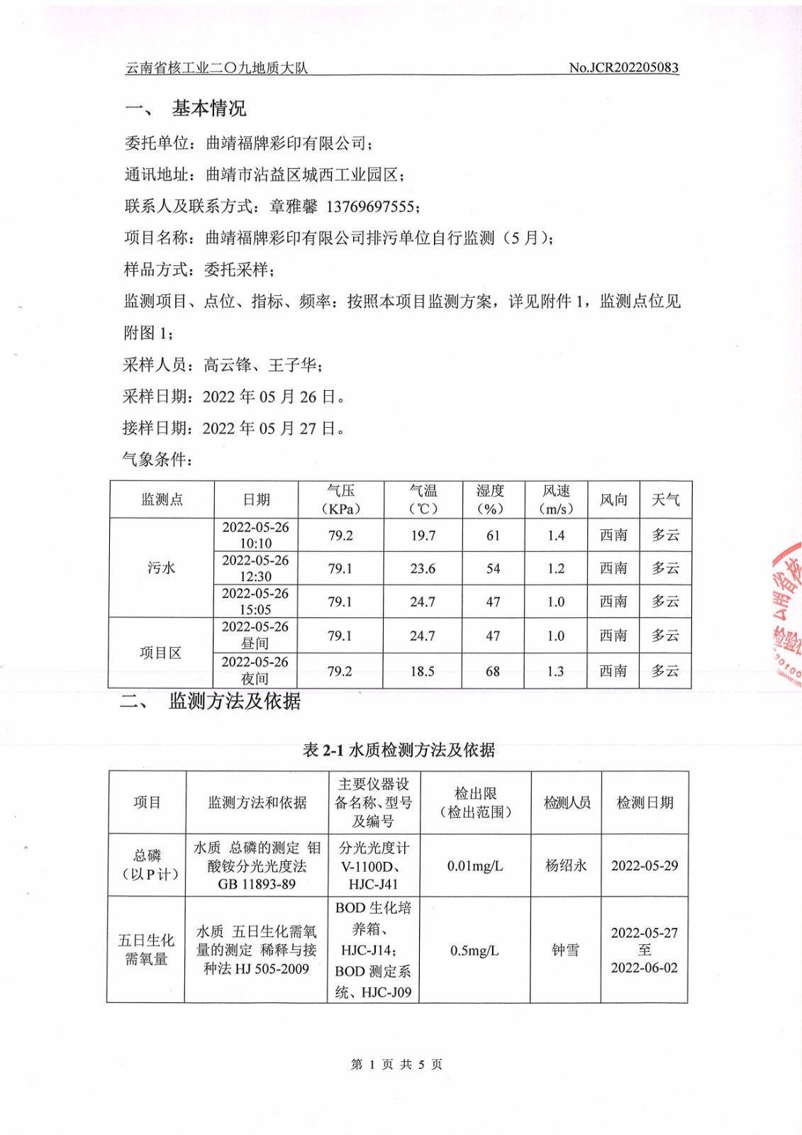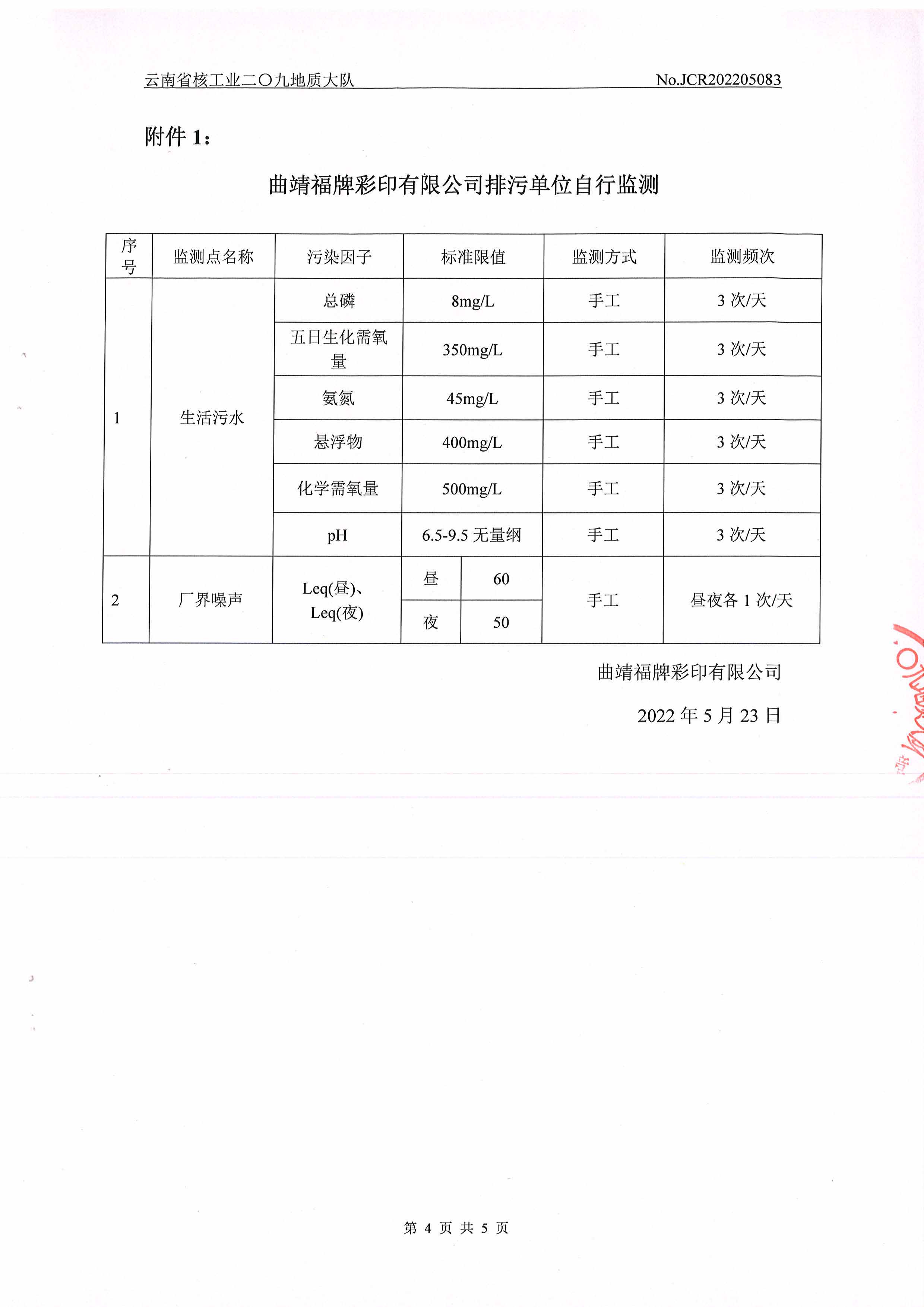 水質(zhì)、噪聲監(jiān)測報(bào)告